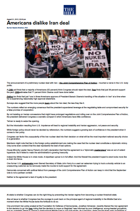 […] #Media / #News / #Scholarship / #Inquiries / #UBSHEEHAN: Reject the Nuclear Deal in Favor of Regime Change from Within | The Hill | Commentary | July 30, 2015 […]