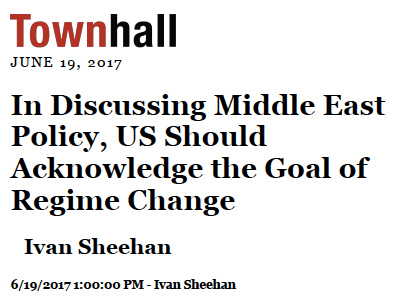 Dr. Sheehan – In the Media » Dr. Ivan Sascha Sheehan | SHEEHAN | In Discussing Middle East Policy, US Should Acknowledge the Goal of Regime Change | Townhall | 19 June 2017 | Screenshot 2